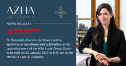 January 2024Dr. Mercédeh Azeredo da Silveira speaks on sanctions and arbitration at an event of the ASA Local Group ZurichPrevNext